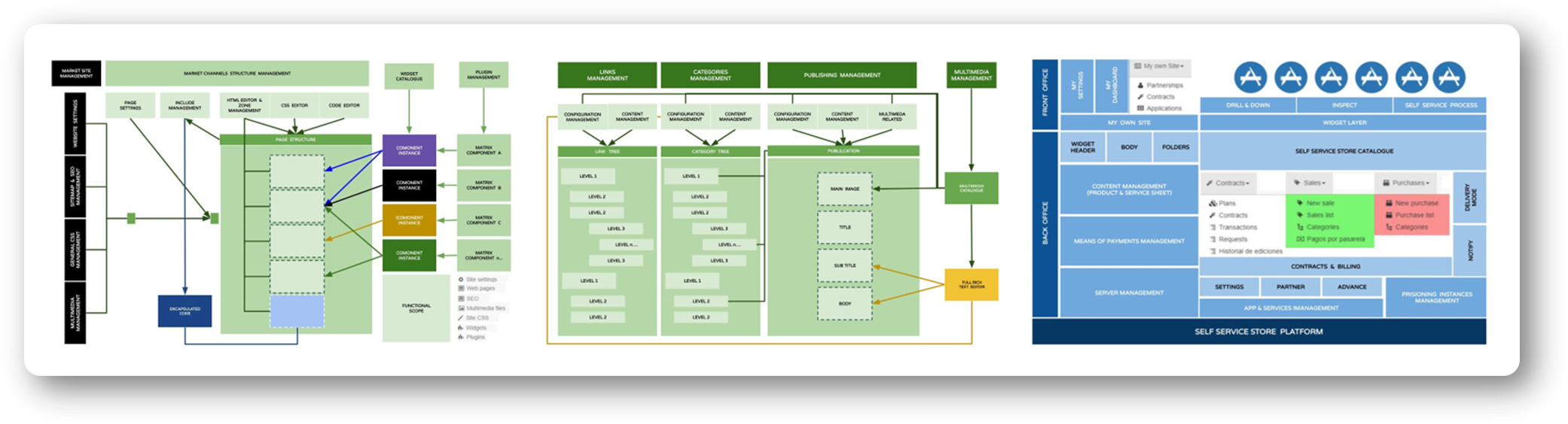 The Platform allows you to create, design and develop Presentation Layers; providing tools that enable the end-end configuration of the general structure and the particular structures to adapt them to the Sector to which it is addressed. Administrator User will be able to customize their corporate identity, domain and subdomain management, provision and automatic management of SSL certificates, language management, email manager, notification templates, user administration, cache management, session management, file management, interoperability administration with external agents... among other functions