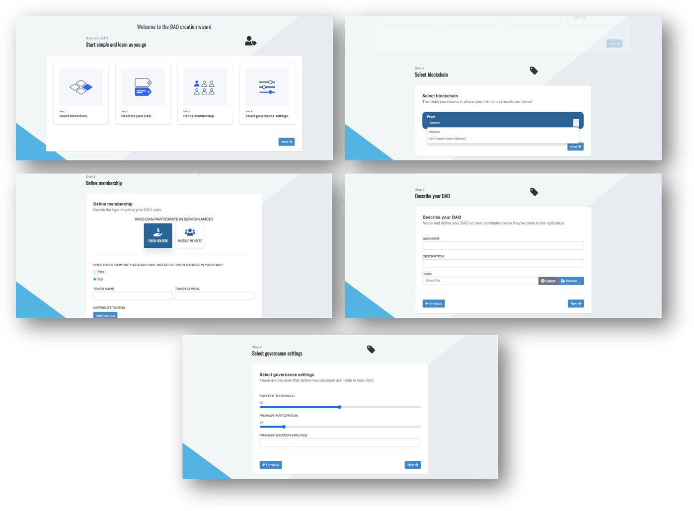 The Platform offers all the tools for the users to manage the creation, launching, governance, administration and exploitation of their DAO