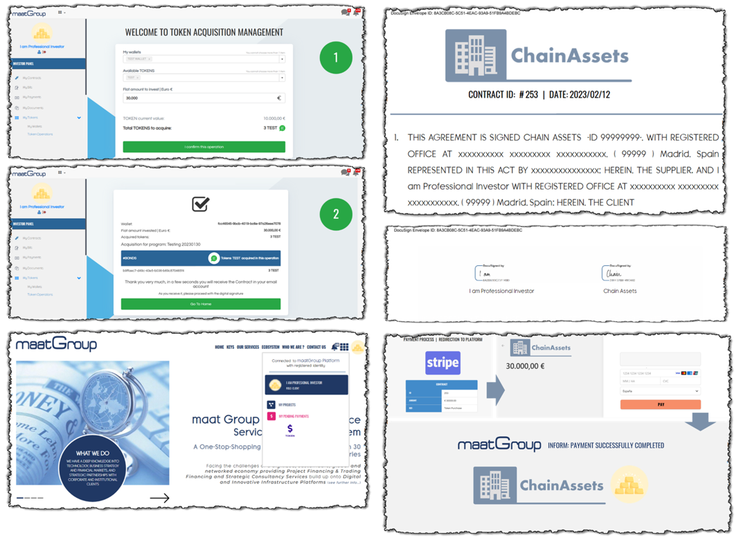 The Investment process is not only secured by the underlying infrastructure, but also, adds a digital signature and a controlled payment procedure that will allow the Investors to manage their operations with full guarantee